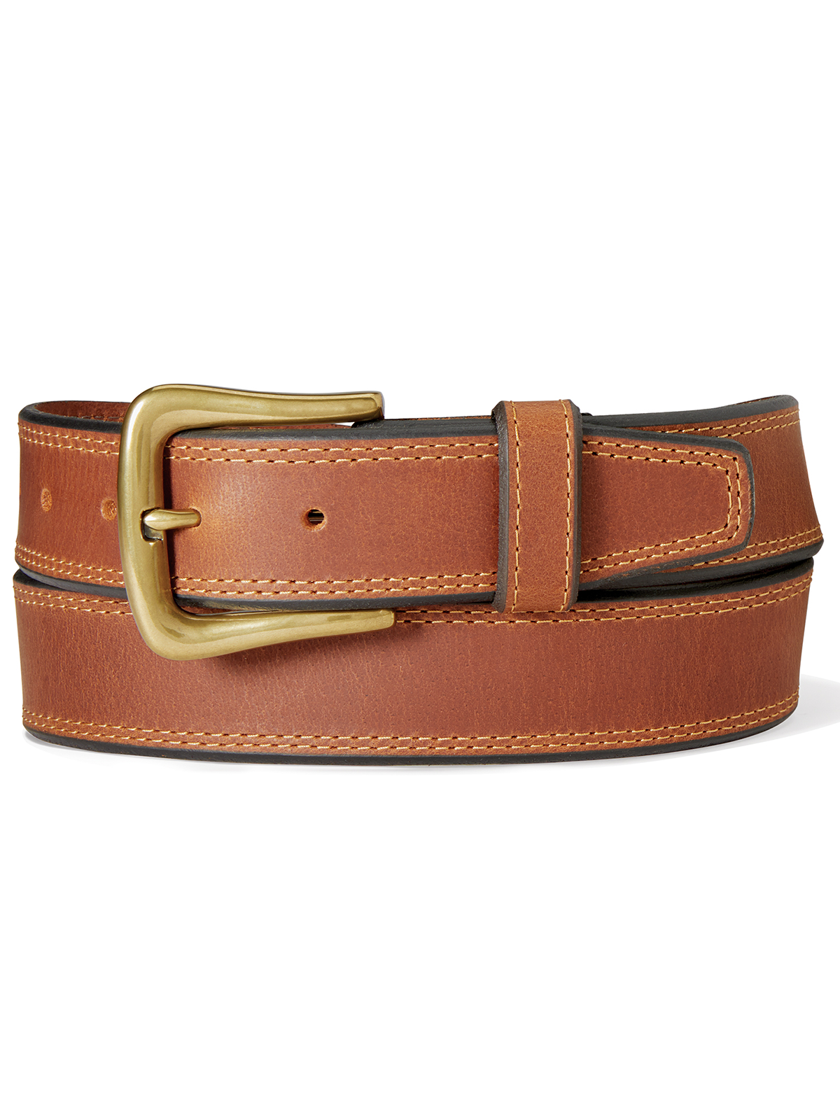 Naturally milled vegetable tanned leather with double-stitching detailing and a brass finished buckle make this belt as great-looking as it is durable.