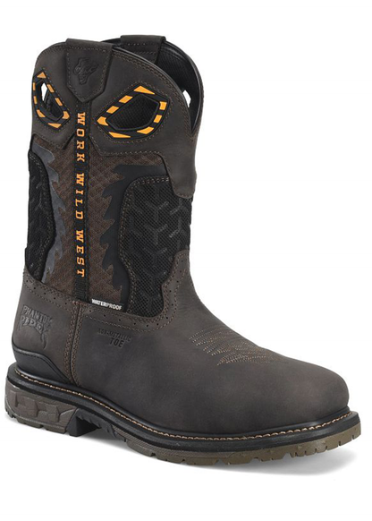 The Crucible 11” waterproof composite toe roper from our Iron Horse series is designed for durability with a barnyard acid-resistant leather foot, and a textile and TPU shaft to keep things cool. These boots are fortified with a puncture-resisting insole, so they’re ideal for jobs where hazards like sharp objects, demo debris, or exposed rebar may be in your path. A waterproof membrane helps keep hardworking feet dry, no matter what comes your way. These boots are equipped with an oil- and slip-resisting outsole that’s designed to combat abrasion for longer wear.