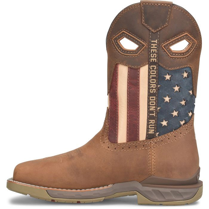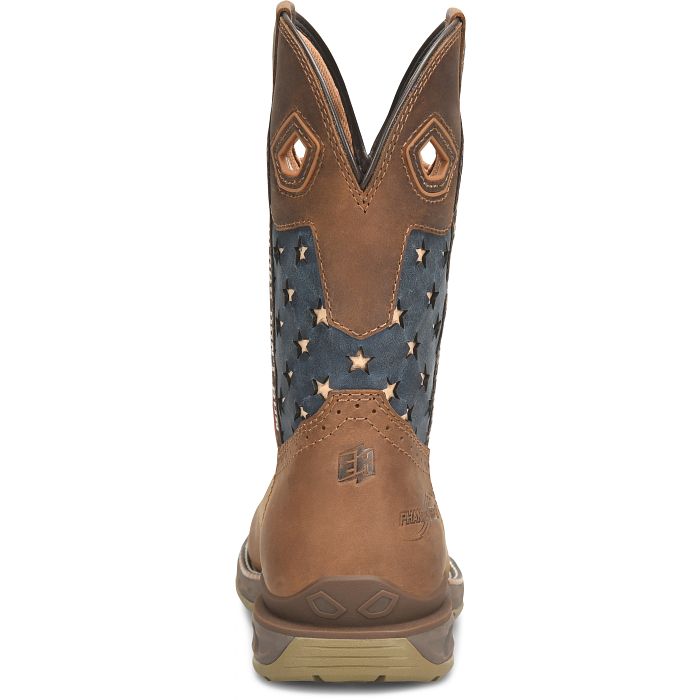 With Aspen Honey Leather and a Stars & Stripes Quarter, these Phantom Rider boots deliver on looks and safety. They’ve got a Composite Safety Toe, Electrical Hazard rating, and a slip-resistant sole. Built for hard working patriots, these boots keep you comfortable all day long.