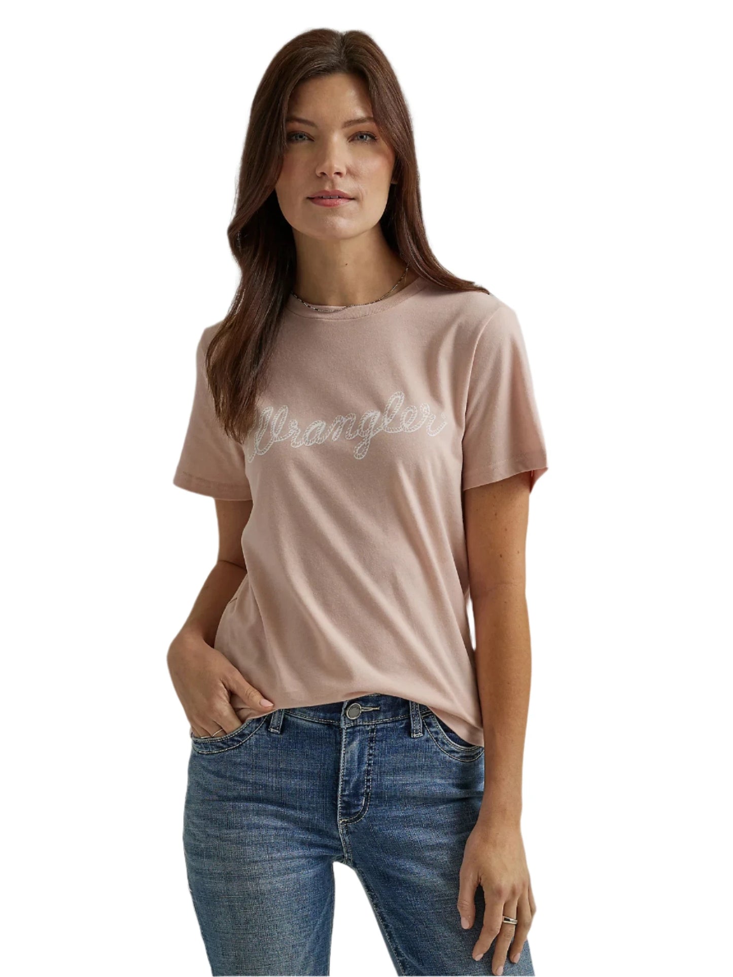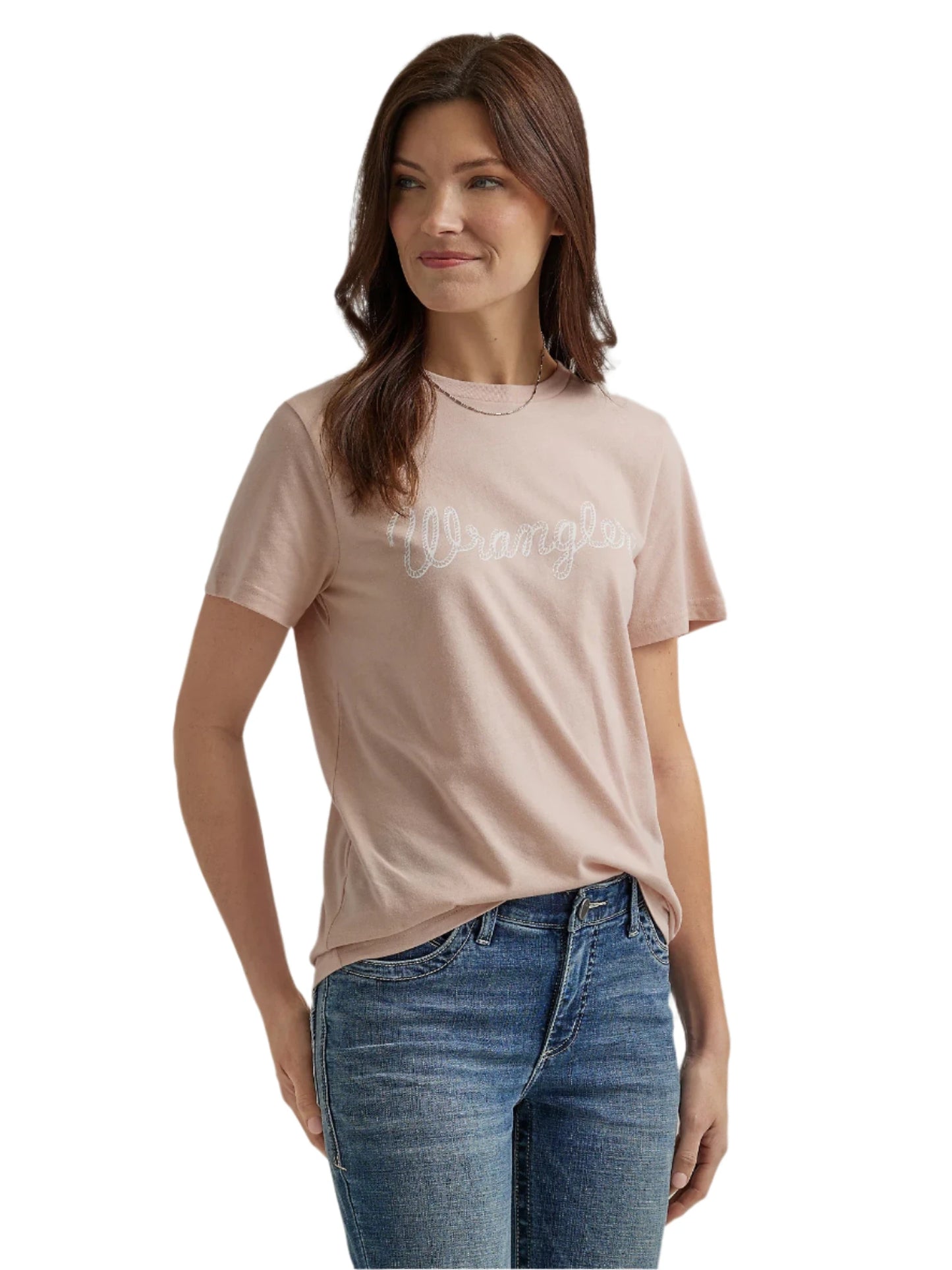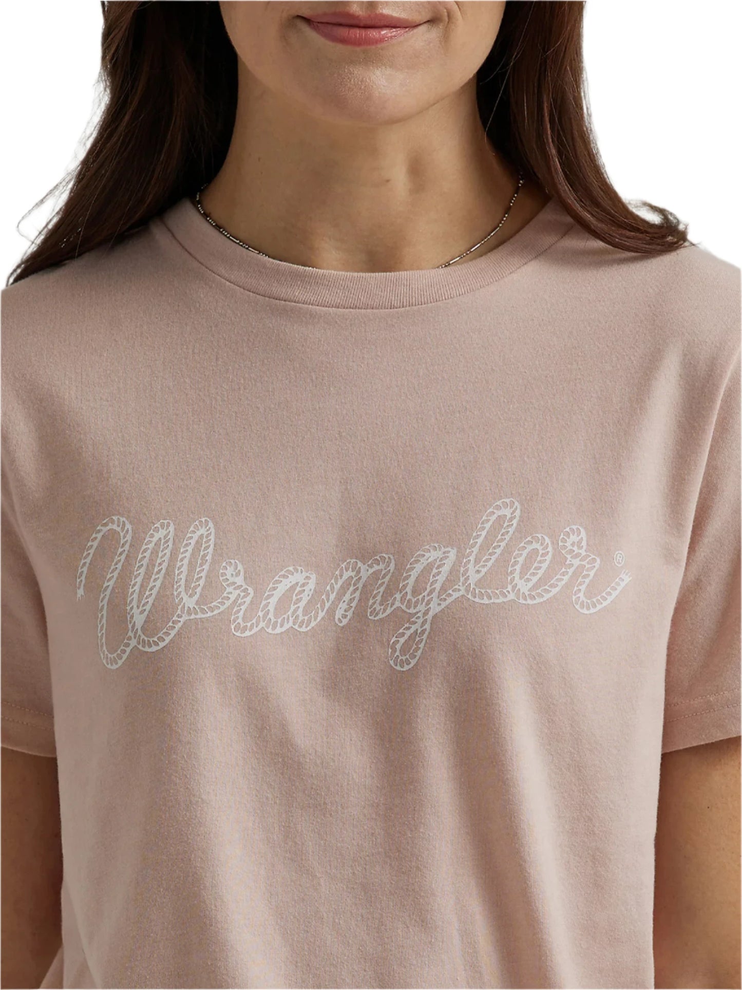 The Wrangler Retro® Rope Logo Short-Sleeve Tee in Peach Whip Heather is the perfect addition to your casual wardrobe. Here are the key details about this stylish t-shirt: