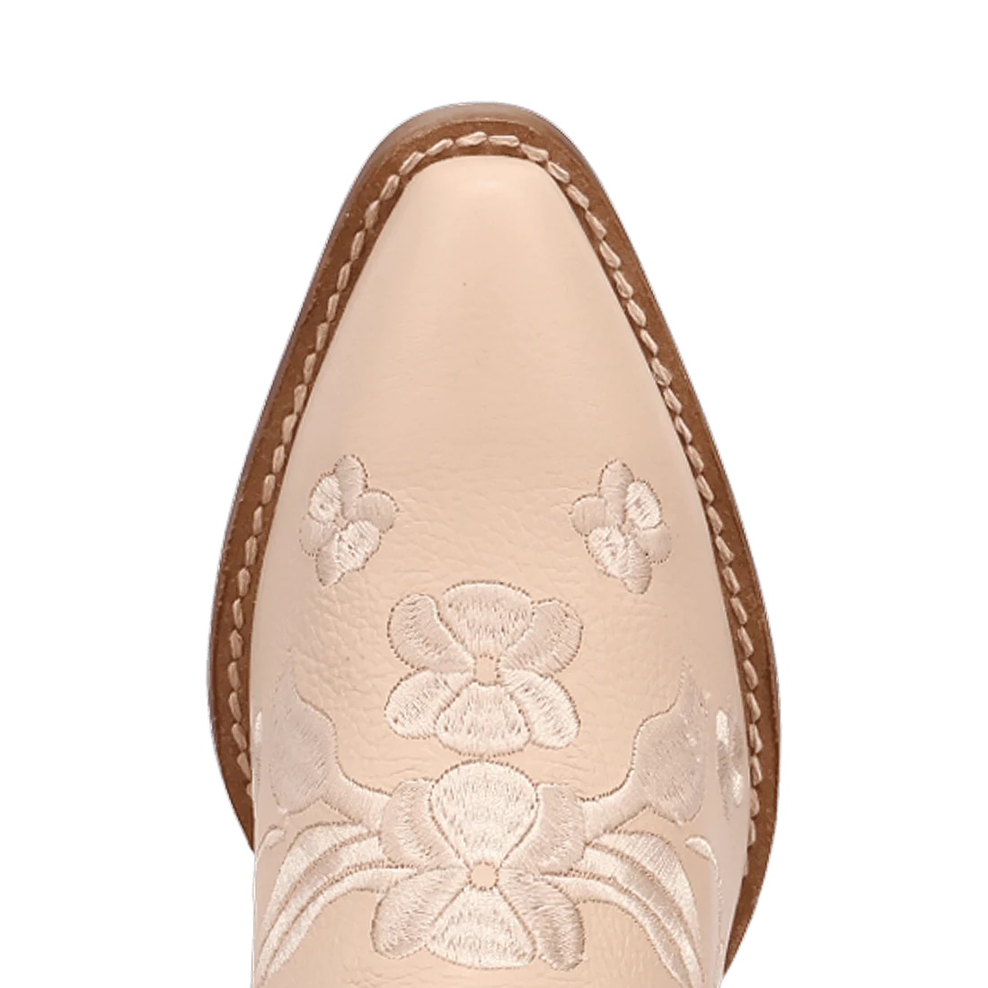 Introducing “Sweetheart” – the bootie that brings a touch of romance and elegance to your everyday style. Adorned with exquisite tone-on-tone floral embroidery, “Sweetheart” offers a delicate and sophisticated look that’s perfect for any occasion. The subtle detailing enhances the bootie’s classic silhouette, creating a refined yet charming aesthetic that pairs beautifully with both casual and dressy outfits. Crafted for comfort and style, “Sweetheart” is your go-to bootie when you want to add a hint of romance to your look.