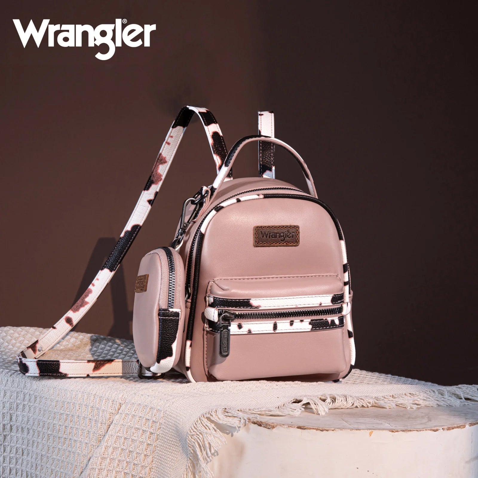 Wrangler Cow Print Trimmed Mini Backpack With Coin Pouch - Pink - WG102-8600PK