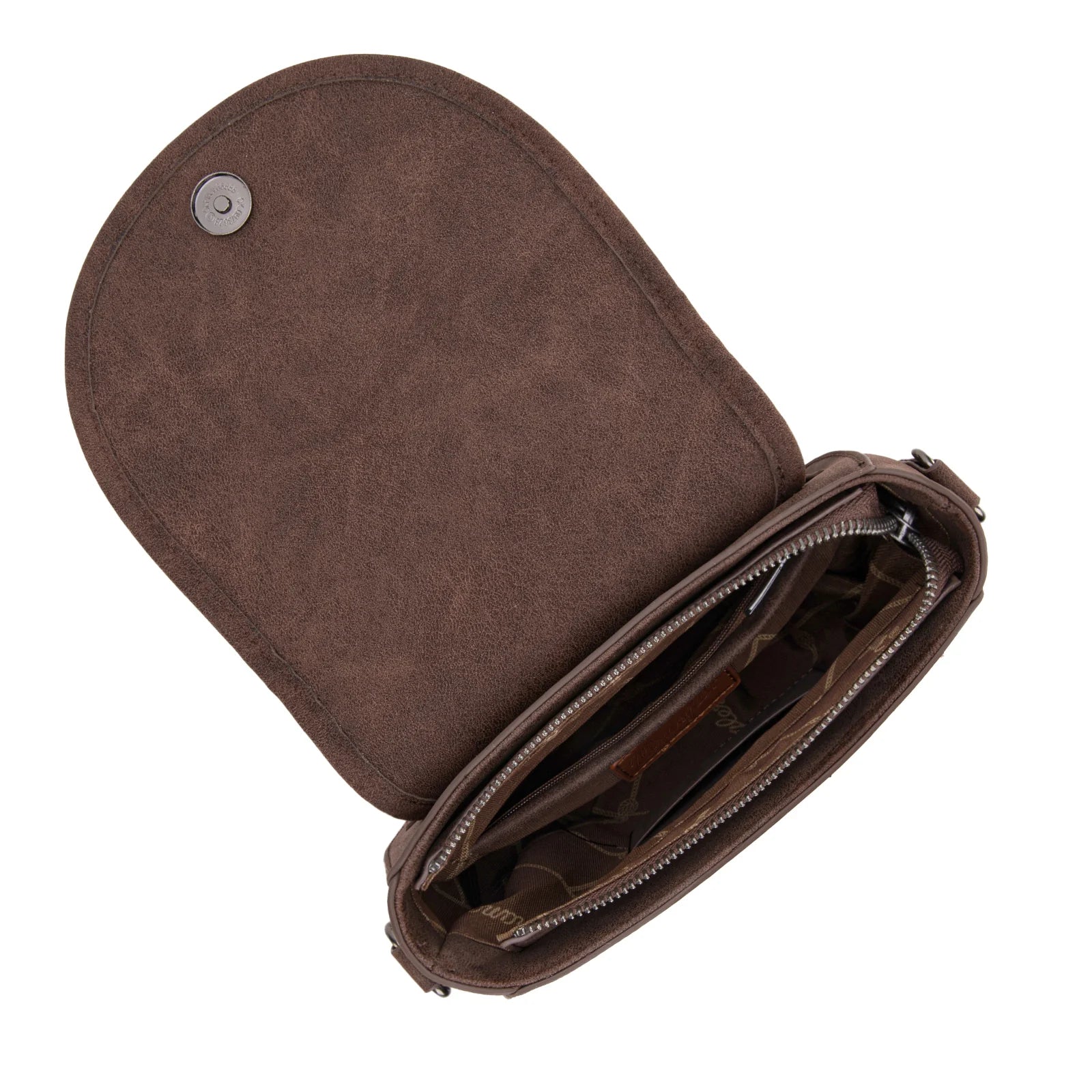 Made vegan leather (suede-feel) , this saddle bag has: