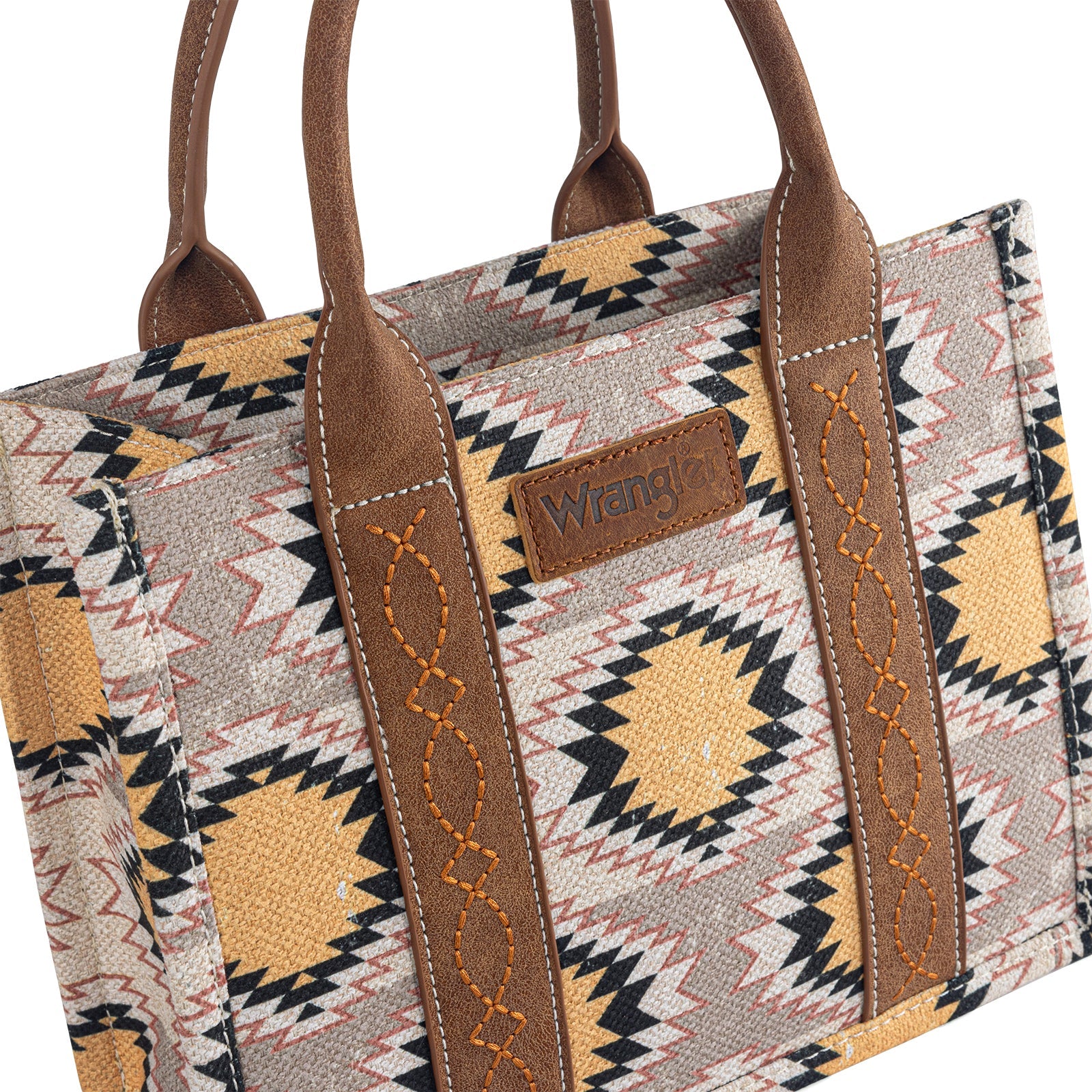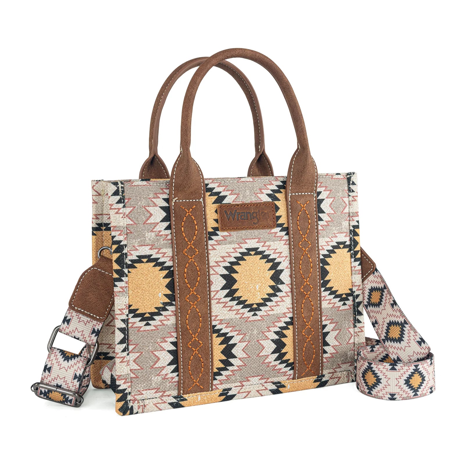 Wrangler Aztec Distressed Print Dual Sided Print -Tote/Crossbody - Beige - WG221-8120BG
